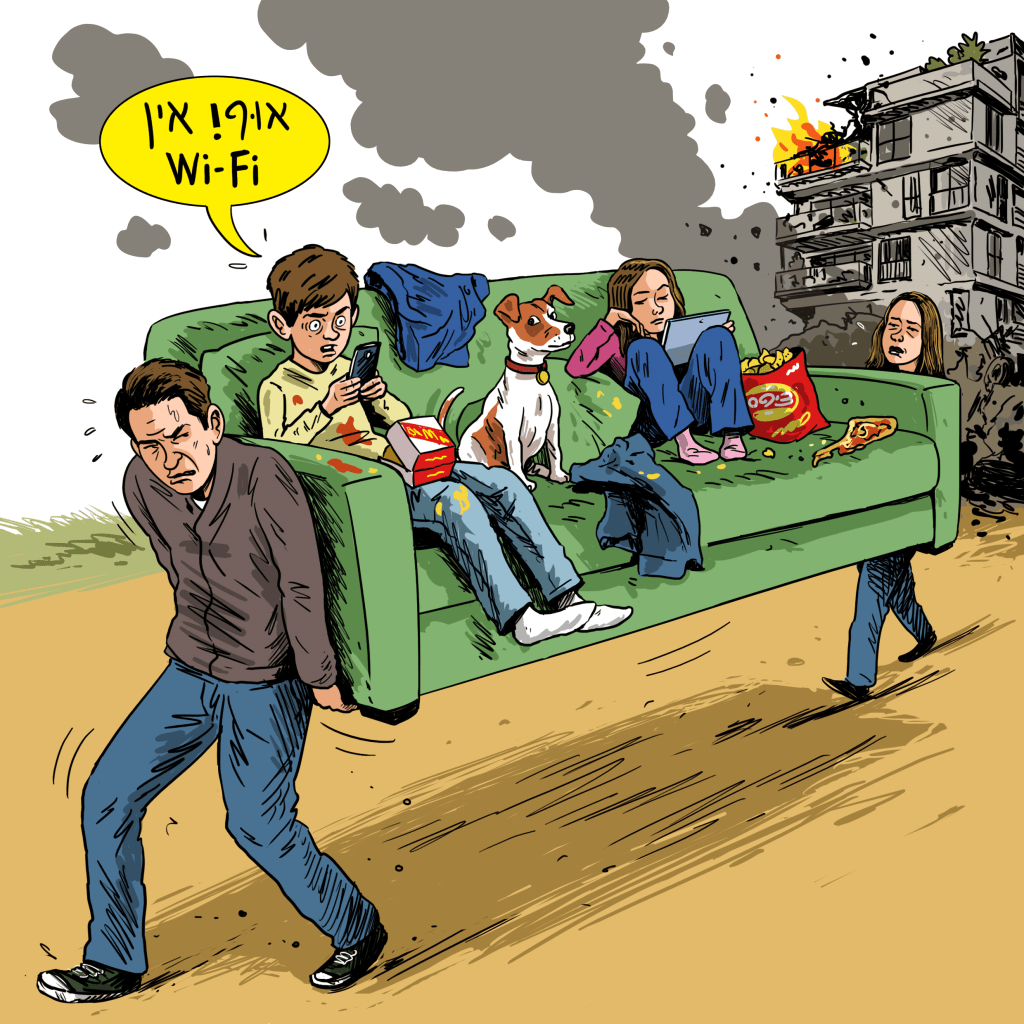 אני מסתכל על גבו ההולך ומתרחק ממני, לבוש סווטשירט אדום ממותג של בילבונג, וחושב לעצמי: לא, הילד הזה לא יהיה פליט טוב. במקרה ההיפותטי שבו צבא זר – או שבעה – יכבשו את ישראל, ואנחנו נצטרך להימלט מפה כשרק קולקציית החורף של זארה לגופנו, הילד בטח יתיישב לי על הכתפיים (הרגליים שלו כבר יגיעו לקרקע), יגיד: "תעיר אותי כשמגיעים לאמריקה והאינטרנט כבר מחובר" ויירדם.