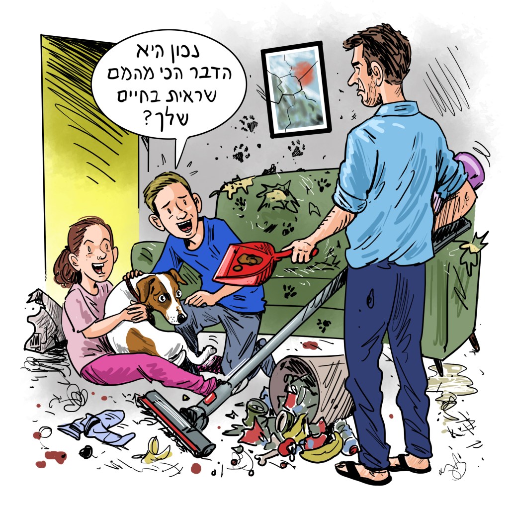 הרי רובנו לא עד כדי כך צדיקים או חומלים. רובנו פשוט נתקענו עם הכלב הארור. הילדים לחצו עד שנשברנו והבאנו אותו, לא היה לנו מושג במה אנחנו מסתבכים, חשבנו שיהיו לו פיצ'רים שמזוהים עם כלבים – מתברר שיש לו הרבה יותר באגים מפיצ'רים, הם ממש מסתובבים לו על הפרווה – ובסופו של דבר אנחנו מוצאים את עצמנו מוליכים ברצועה, שלוש פעמים ביום, משהו שייתכן שהרצועה עצמה יותר יפה, הגיונית ומתגמלת ממנו.